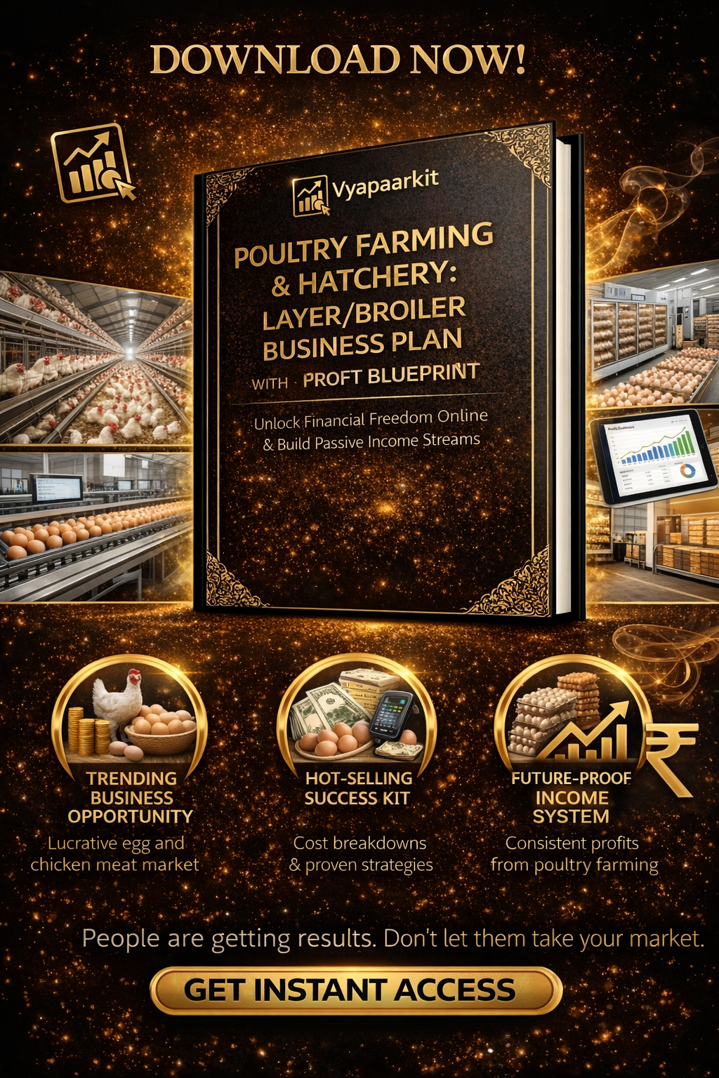 This Poultry Farming Business Plan is a daily-cash-flow business blueprint built around India’s rising protein consumption. Eggs and chicken sell every day, making poultry one of the fastest ROI farming businesses when structured correctly. This plan shows how to reduce losses, stabilize margins, and scale safely.