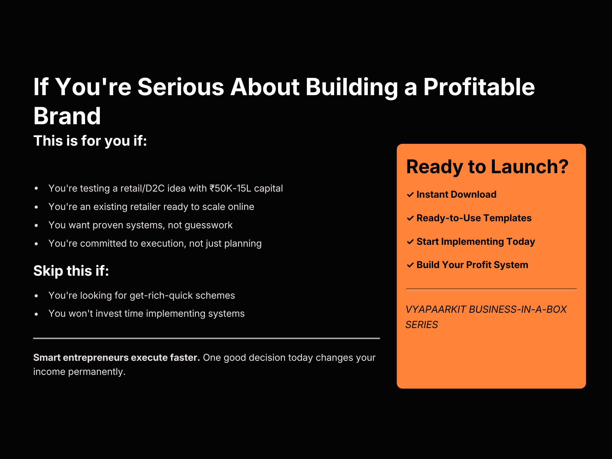 Launch a successful retail or D2C brand with the VyaparKit Retail & D2C Brand Launch Playbook. Proven systems, templates, and strategies for Indian entrepreneurs. 🚀