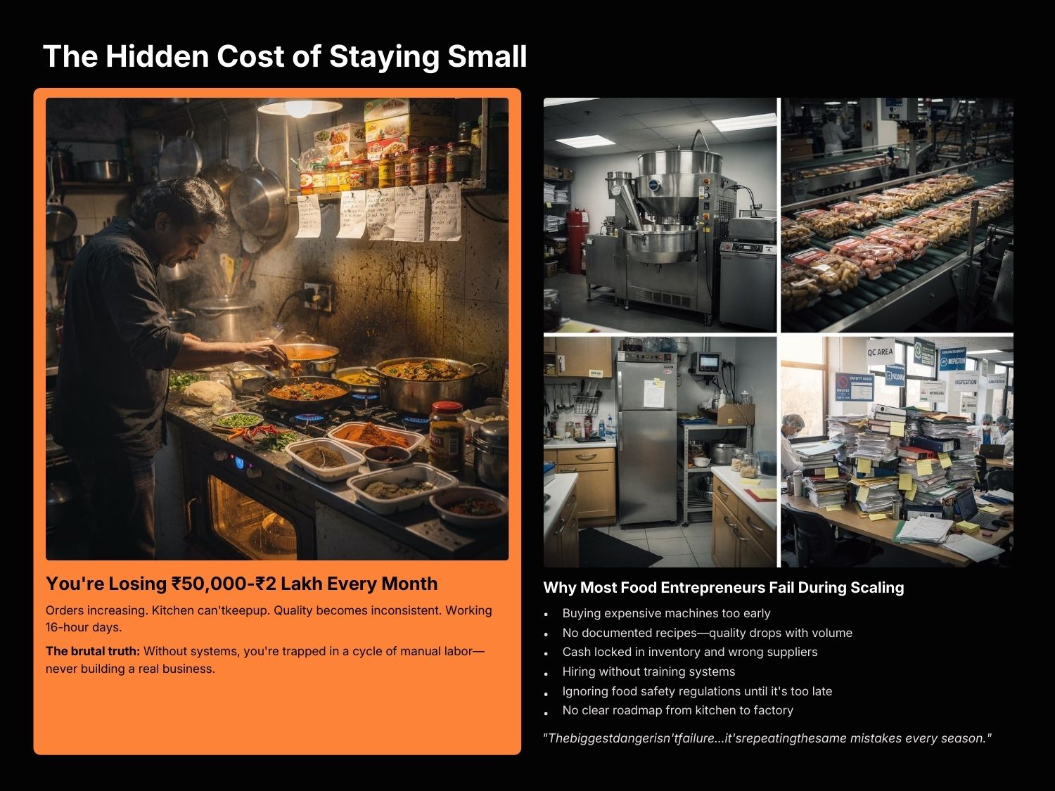 This Food Business Scaling System is a complete step-by-step startup and growth framework designed specifically for Indian food entrepreneurs who want to move from home kitchen to structured, scalable production.