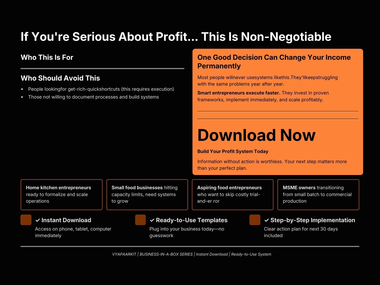 Instead of wasting months on trial and error, this toolkit gives you the exact roadmap used by profitable food brands — covering licensing, equipment, pricing, systems, and expansion.