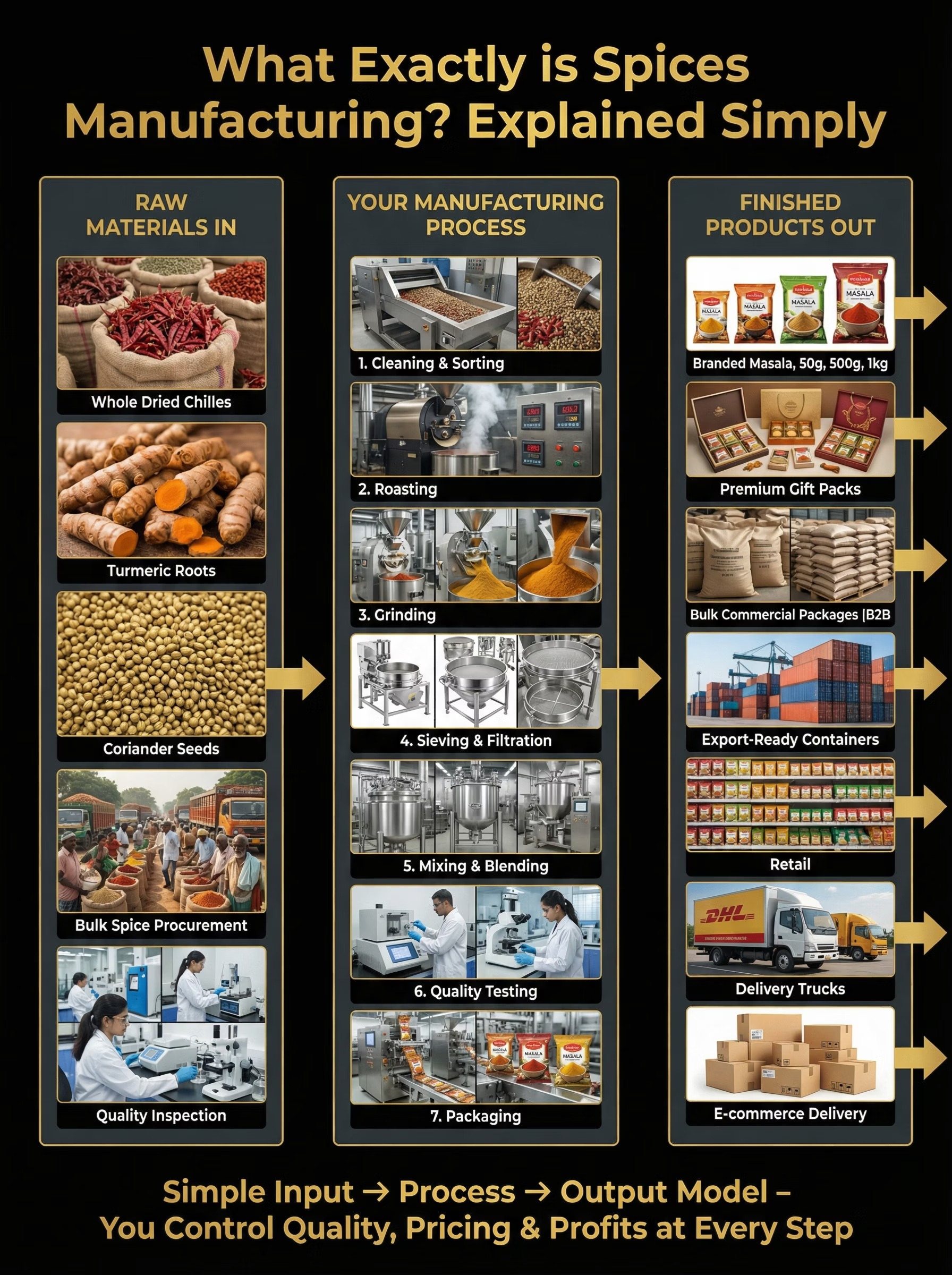 This plan breaks down the complete masala manufacturing process—from raw spice sourcing to cleaning, grinding, blending, and packaging. You’ll understand how quality consistency directly impacts repeat sales and long-term brand trust.