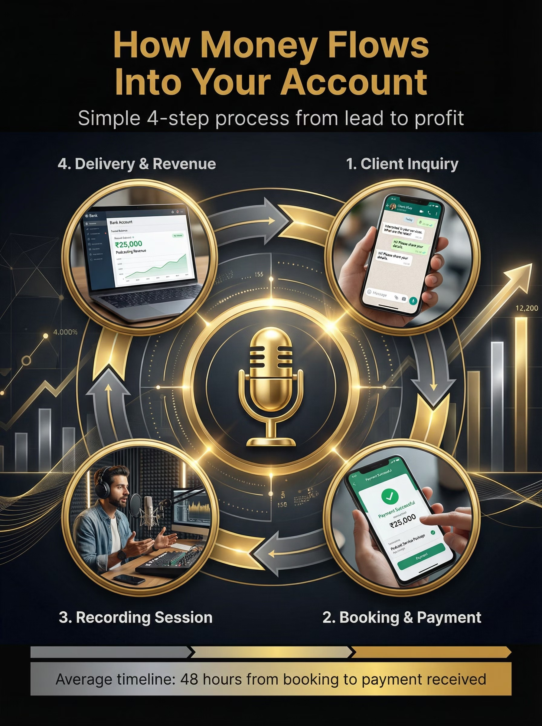 Brand partnerships unlock higher-ticket contracts. Scaling into a full media company is mapped clearly.